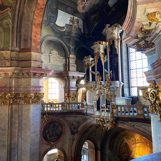 After a leisurely breakfast, Yvette and I headed up the street to visit the St. Nicolas church. It's in the baroque style, not one of these tremendously huge gothic cathedrals. Unassuming on the outside but quite spectacular within.